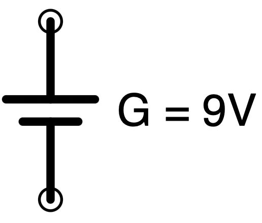 Oder schlicht als ideale Spannungsquelle (wenn die sonstigen Eigenschaften nicht relevant sind):