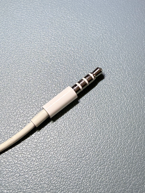 hier: Audio-Stecker (Apple EarPod) mit vier Kontakten zum Anschluss des Headsets mit Mikrofon, Tasten zur Lautstärkesteuerung und Gesprächsannahme