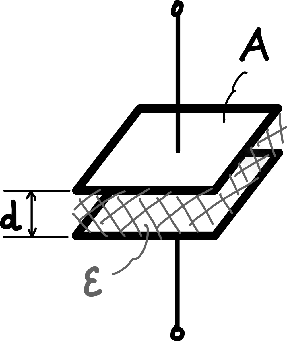 Diese Formel zeigt: Größere Platten und kleinerer Abstand ergeben größere Kapazität.