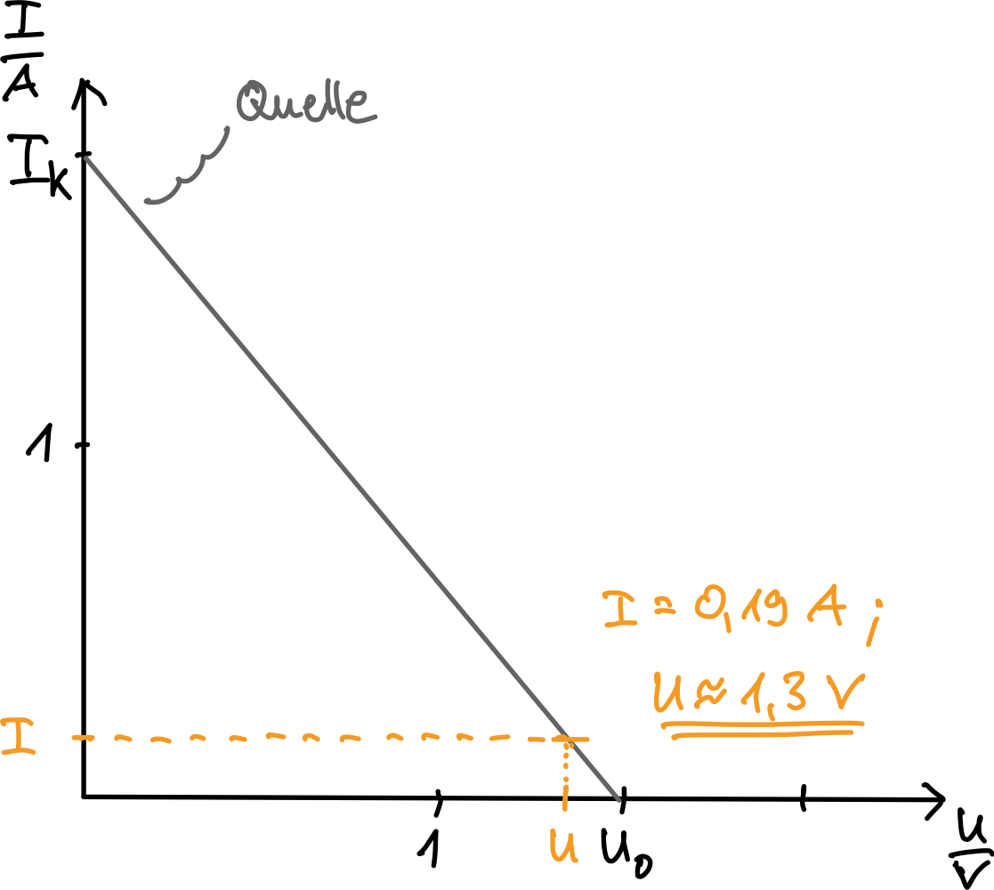 e) Ermitteln Sie grafisch die Klemmenspannung gemäß Aufgabenstellung und vergleichen Sie das Ergebnis mit dem Ergebnis der Rechnung in d).