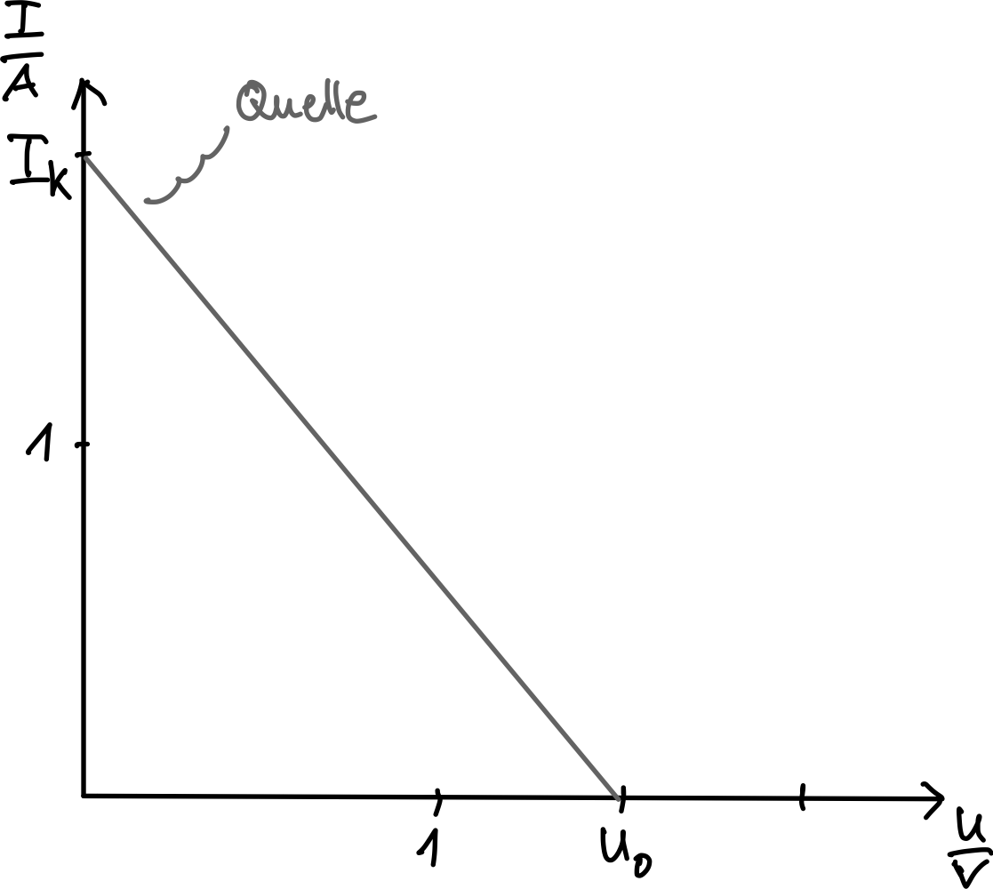 c) Zeichnen Sie die I-U-Kennlinie der linearen Quelle.