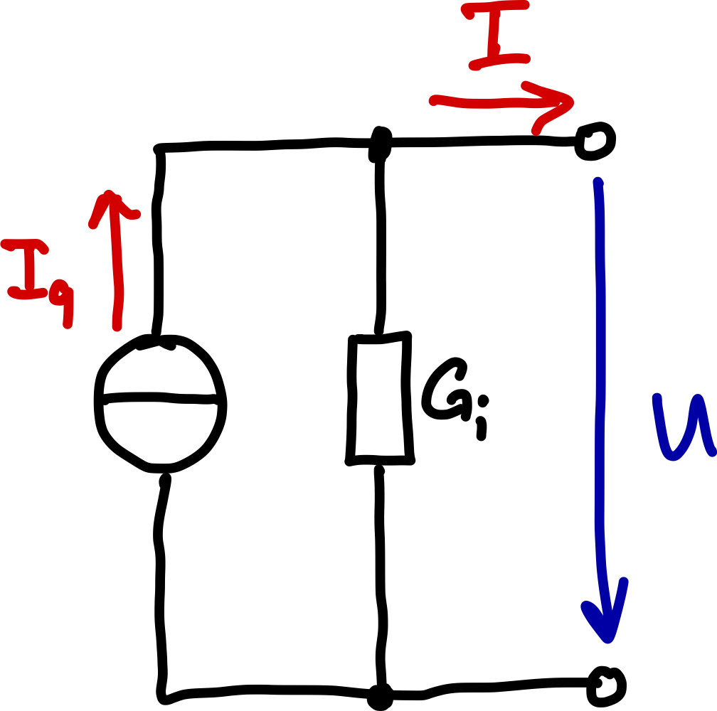 - Thevenin-/Norton-Äquivalenz: Spannungsquelle in Serie mit Stromquelle parallel zu