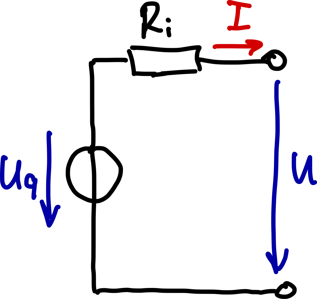 Eine Monozelle (D-Cell) hat die Leerlaufspannung und den Kurzschlussstrom . Welche Klemmenspannung stellt sich ein, wenn ihr der Strom entnommen wird?