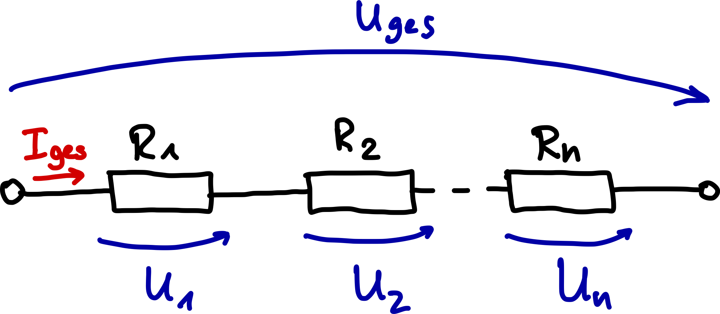 - Alle Widerstände werden von der gleichen Stromstärke durchflossen: