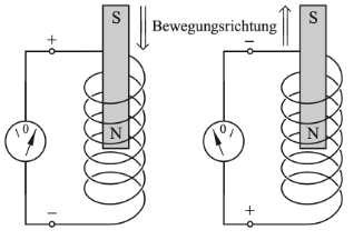 Wird ein Stabmagnet mit dem Nordpol voran auf eine Spule zubewegt: