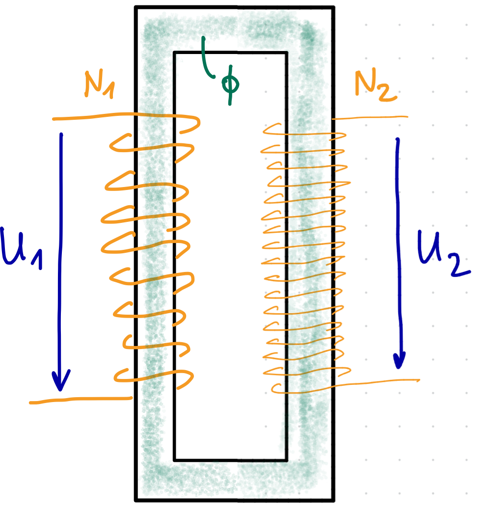 - Einem ferromagnetischen Kern (meist geschichtetes Eisen zur Vermeidung von Wirbelströmen)