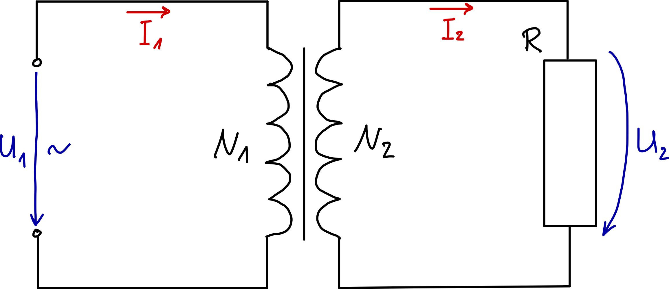 Für einen idealen Transformator (keine Verluste, vollständige magnetische Kopplung) gilt: